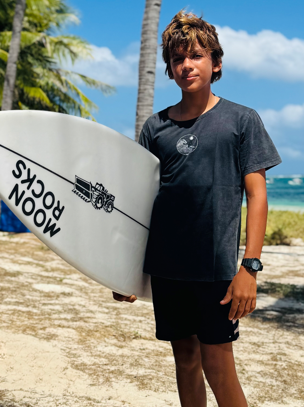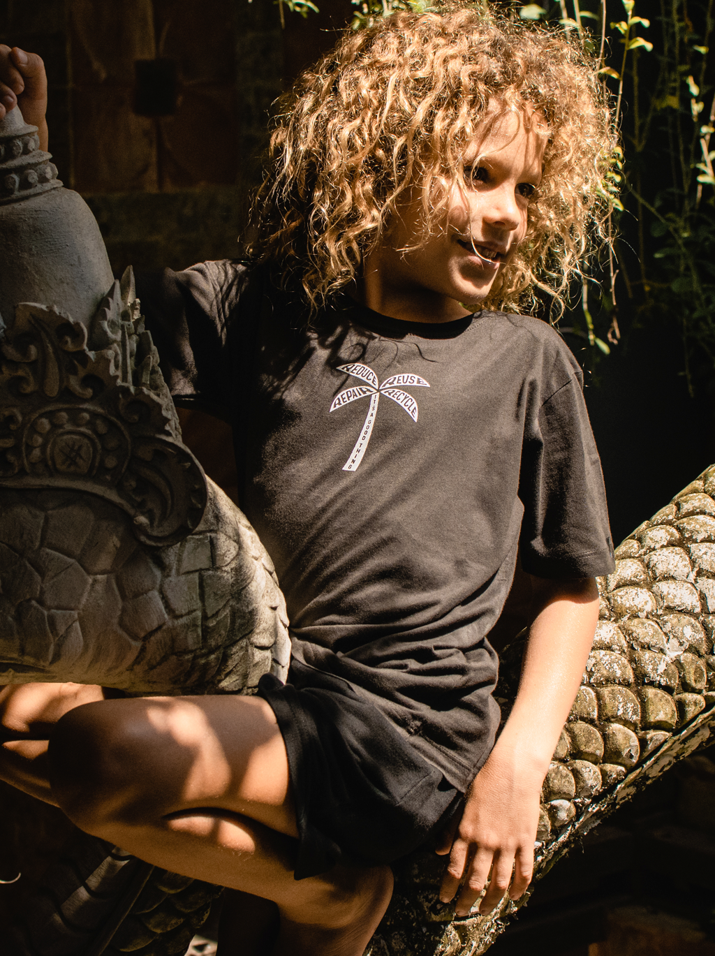 KIDS T-SHIRT CHARCOAL REUSE PALM